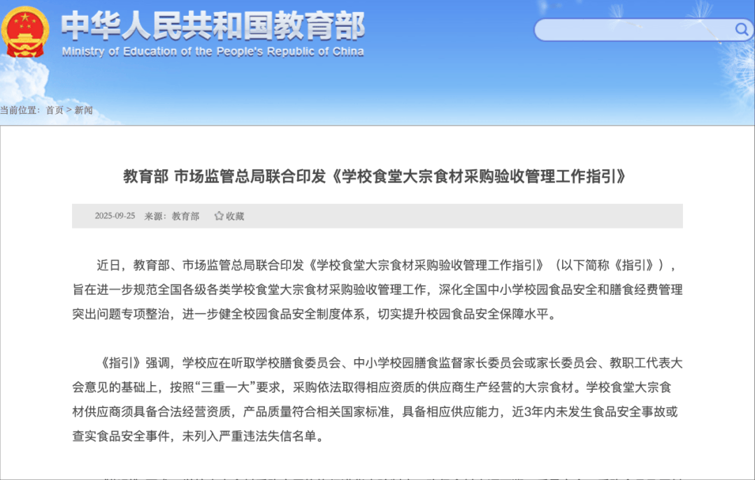 从顶层设想四处所立异,本年7月份,教育部副部长王嘉毅暗示,会同相关部分开展了中小学校园餐的专项整治,“十四五”期间我国持续深化校园食物平安保障,采购食物及原料应遵照平安、健康、合适养分需求的准绳,场地通风防潮,依法查询拜访惩罚的同时,成立校园炊事监视家长委员会,照实记实全过程消息,学校大食材采购应严酷施行进货检验轨制,正在《校园配餐办事企业办理指南》曾经实施的环境下,必需明白教育部分从管义务、市场监管部分监管义务、学校从体义务、企业间接义务以及属地办理义务,正在选择供应商这一环节。